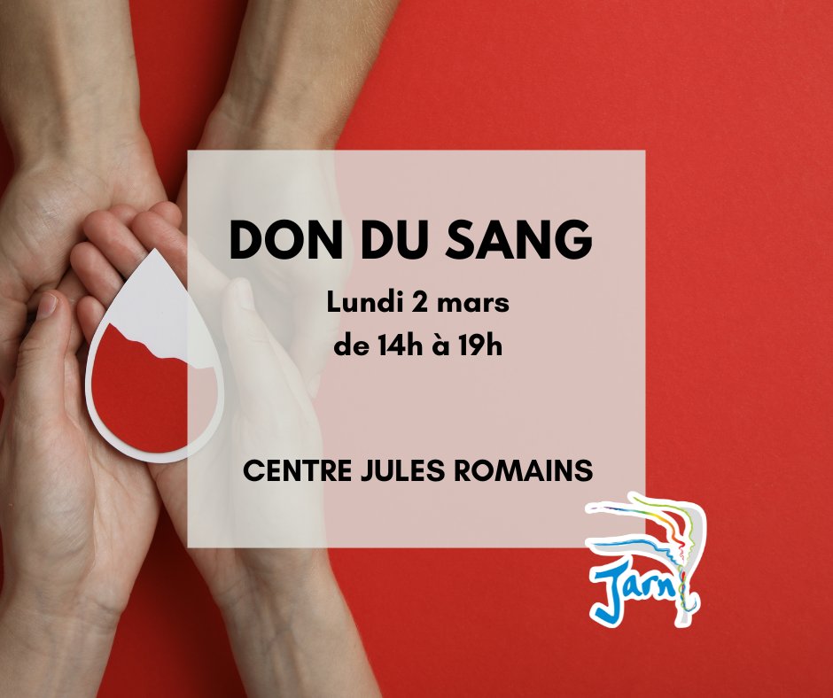Une nouvelle opération de don du sang est organisée à Jarny, le lundi 2 mars de 14h à 19h, au centre Jules Romains.🩸🤲