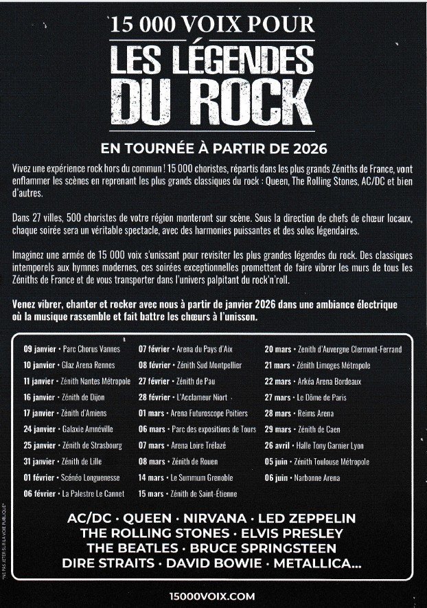 15 000 VOIX POUR LES LÉGENDES DU ROCK dans tous les Zéniths de FRANCE.